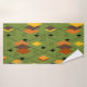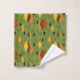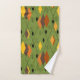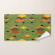 This towel set has a mid-century modern 1970s design of diamonds, and starbursts on a field of green.