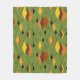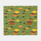 This medium fleece blanket has a mid-century modern 1970s design of diamonds, and starbursts on a field of green.