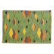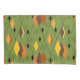 This pillowcase has a mid-century modern 1970s design of diamonds, and starbursts on a field of green.