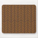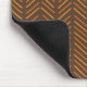 This mouse pad has a 1970s chevron design in retro orange and gold on a field of brown.
