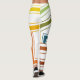 These leggings have an art deco design of lines in green, yellow, brown, orange, and blue.