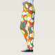These leggings have mid-century modern design of circles in blue, green, brown, sienna, yellow, and orange with white ovals inside.
