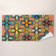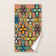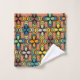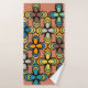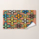 This towel set has a design of ovals that form flowers in 70s retro colours.