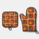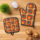 1970s Retro Style Geometric Design Oven Mitt & Pot Holder Set