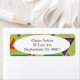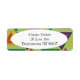 These return address labels have a 1970s design on concentric triangles in shades of teal, orange, yellow, purple, and pink on a field of green.