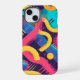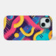 Vivid, wavy lines and geometric shapes intertwine in a dynamic composition of pink, yellow, and blue. A harmonious blend of colors and patterns gives the artwork an energetic, abstract feel.
