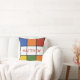 This simple geometric design of square in bright primary colours of orange, blue, red, green, yellow and white set against a black background has a retro 1980s feel. Add your own name or other text to create your own personalised pillow with a fun and nerdy style.