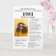 Say happy birthday to someone born in 1981 with this unique Newspaper style birthday card, including a photo of the recipient and a collection of fun facts and world news from the year of their birth. Get creative and create a personalised keepsake. Designed to resemble a vintage newspaper in classic black and white style. A cute and fun way to celebrate the 1980s!