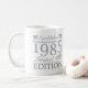 An elegant birth year gift idea with silver fancy writing and decorative leaves. For anyone celebrating the year they were born.