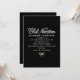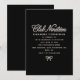 Elegant black and white invitation features white pearl script and a tiny pearl bow on a black background. Club Nineteen gives it a hip, trendy vibe, while the bow at the bottom adds elegant femininity.