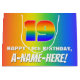This joyful and fun birthday giftbag design features a large number “19” having a colourful rainbow spectrum inspired gradient pattern. It also features the message “HAPPY 19th BIRTHDAY,”, and a customisable recipient name. The background also features an exciting multicolored rainbow spectrum inspired gradient pattern. Personalised gift bags like this might be used when giving gifts or presents in honour of somebody’s nineteenth birthday. [~Z0000577]