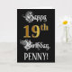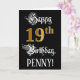 19th Birthday — Fancy Script; Faux Gold Look; Name Card