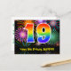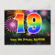 19th Birthday – Fun Fireworks Pattern + Rainbow 19 Postcard