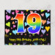 19th Birthday: Fun Hearts Pattern, Rainbow 19 Postcard