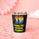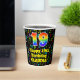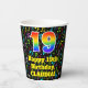 This joyful and cheerful music themed birthday paper cup design features a large number “19” with a rainbow spectrum gradient inspired pattern, along with the message “Happy 19th Birthday,”, and an editable name. The background features a multicolored music notes and symbols pattern. Vibrant, colourful paper cups like this might be fun to have at a birthday celebration/party being held to honour somebody’s nineteenth birthday. [~Z0000541]