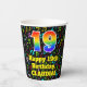 19th Birthday: Fun Music Notes Pattern, Rainbow 19 Paper Cups