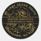 Add a special touch to all your 19th Birthday invitation envelopes with this elegant round design. It features a bouquet of gold roses in the centre. Open line art gives it a vintage botanical vibe. The birthday celebrant's name and 19th birthday party are written across the centre. Your address is added in curved text above and below the floral bouquet. This item is part of the Luxe Gold Rose collection. You'll find many coordinating items to create a unique invitation suite, welcome signs and party decorations.