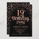 19th Birthday Party - Black & Rose Gold Invitation