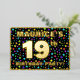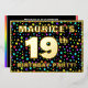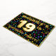 The front of this eye-catching and exciting nineteenth birthday celebration foil invitation card design features an editable name, a large number “19th”, the message “BIRTHDAY PARTY!”, and a border. The background of the front has a vibrant, multicolored pattern of star shapes. The back features personalised details about the event, such as the date, time, venue, and any other relevant information. Personalised invitations like these might be a fun way to invite guests to a birthday gathering being held to honour somebody’s 19th birthday. [~Z0000600]