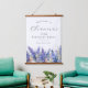 Elegant summer watercolor blue larkspur flowers create a beautiful floral border at the bottom of this birthday party welcome sign, larkspur or delphinium flowers are the July birth flower. A trendy font combination gives it a modern aesthetic. All of the text is editable.
