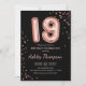 19th Birthday - Rose Gold Balloons Black Invitation