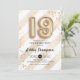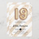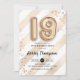 19th birthday party invitation. Elegant design in faux glitter gold with white stripes. Invite card with gold number 19 balloons, script font with confetti. Perfect for a stylish nineteenth bday celebration. Message me if you need custom age.