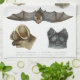 A detailed, hand coloured 19th century print depicting illustrations of four different types of bat.