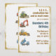 I chose the larger postcard sized one, as the font would be large for older eyes, and customised it keeping the Rail Ticket theme on the front, with venue address/date/time of party, and on the back I added another steam train and various 80 speed limit/rail signages. The trick is not to overdo it or it looks too busy. I also added at one end of the front side, a word of thanks from the birthday boy.