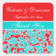 This 1.5" square modern and trendy turquoise blue, red, and white floral damask wedding favour thank you sticker or envelope seal matches the wedding invitation shown below. If you need any assistance, or if you require any other matching items in this design, please email your request to niteowlstudio@gmail.com.