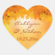 This 1.5" heart shaped orange, brown, yellow, gold and rust coloured maple leaves and sun spots wedding favour sticker or envelope seal matches the wedding invitation shown below. It would be perfect for a relaxed fall or country wedding, or an informal or casual wedding. Use it to seal your invitations with or attach to your wedding favours or place at your candy buffet table. You can also change the shape and size. ****BE CAREFUL if you do change the shape of the sticker yourself, as some of the design and text may get cut off. To avoid a mis-print, please email me to request another shape. If you need any other matching items, or assistance customising this sticker, please email niteowlstudio@gmail.com.