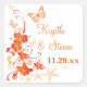 This 1.5" square shaped nautical beach theme inspired wedding favour sticker and/or envelope seal has bright orange hibiscus type tropical flowers and decorative scrolls on it, along with sand beige butterflies, starfish, a scalloped shell and a seahorse on it that matches the wedding invitation shown below. It would be perfect for a destination wedding, a beach wedding, or for anyone getting married in the tropics. Use it to seal your invitations with or attach to your wedding favours or place at your candy buffet table. You can also change the shape and size. ****BE CAREFUL if you do change the shape of the sticker yourself, as some of the design and text may get cut off. To avoid a mis-print, please email me to request another shape. If you need any other matching items, or assistance customising this sticker, please email niteowlstudio@gmail.com.