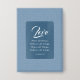 This design features the Bible verse 1 Corinthians 13:7, displayed on a rich blue gouache background. The background is made up of various shades of blue, skilfully blended to create an almost solid appearance while introducing subtle depth through slight colour variations. Surrounding the verse is a charming frame of blue, adorned with playful white polka dots, which adds a whimsical touch to the overall composition.