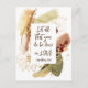 Inspirational quote scripture postcard depicts an elegant modern abstract design in warm trendy colours of blue, plum and beige with gold line art flowers. It features Bible Verse 1 Corinthians 16:14, "Let all that you do be done in love."_