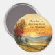 Magnet with inspirational quote Scripture depicts a beautiful golden sunset watercolor landscape with yellow, blue and green earth tone colours. It features a beloved and encouraging Bible Verse 1 John 3:16, "This is how we know what love is: Jesus Christ laid down his life for us."