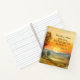 Personalised notebook, journal with inspirational quote Scripture depicts a beautiful golden sunset watercolor landscape with yellow, blue and green earth tone colours. It features a beloved and encouraging Bible Verse 1 John 3:16, "This is how we know what love is: Jesus Christ laid down his life for us." Customise the back with a name or details of your choice.