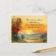 Postcard with inspirational quote Scripture depicts a beautiful golden sunset watercolor landscape with yellow, blue and green earth tone colours. It features a beloved and encouraging Bible Verse 1 John 3:16, "This is how we know what love is: Jesus Christ laid down his life for us." The greeting can be personalised or deleted for a hand written message.