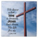 Scripture ceramic tile depicts a blue sky with a wooden cross and features a portion of Bible Verse 1 John 3:1, We know what love is because Jesus laid down His life for us. Photograph by Aaron Burden.