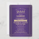 Can you keep a secret? Invite family and friends to an elegant and exciting surprise anniversary celebration with custom photo purple and gold party invitations. Picture and all wording on this template are simple to personalise, including message that reads "Shhh! It's a SURPRISE." The design features one photo of your choice, classic vintage art deco typography, stylish modern script calligraphy, and a modern striped border on a purple ombre background. Please note that gold is printed colour, not metallic foil. Congratulations and Happy Anniversary!