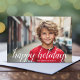 1 Photo Christmas Script White Damask Happy Holiday Card