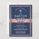 Announce the birth of your baby girl and invite family and friends to the baptism with this elegant custom photo navy blue and faux rose gold foil invitation. All text is simple to customise, so it can include any wording regarding the service and reception. This combined baptism invitation and birth announcement is a chic and elegant way to share all the information on one card, rather than two. The navy blue and pink design features 1 picture of your choice, faux ribbon overlay, stylish art deco inspired typography, and modern script calligraphy. Baby photo and birth details, such as arrival date, weight and length appear on back. Please note that rose gold is printed pink colour, not metallic foil. Congratulations on the arrival of your new little one!