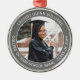Congratulations to the graduate! Commemorate graduation day with a custom photo grey and white premium metal round Christmas ornament. The picture and all text on this template are simple to customise. Include any favourite inspirational quote, motivational saying, school name and degree, congratulations, thanks mum and dad, or other message of your choice. The design features a modern grey and white border, personalised elegant typography name, school, & class year in a circle, and one photo of the graduate, such as a senior picture or image from the commencement ceremony. Makes a thoughtful keepsake graduation gift idea. Use as party favours or decorations for a stylish addition to your special day celebration.