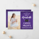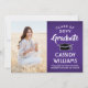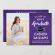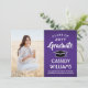Share the joy of a high school or college graduation with these custom photo purple, white and black announcements. (IMAGE PLACEMENT TIP: An easy way to centre a picture exactly how you want is to crop it before uploading to the Zazzle website.) This template is simple to customise with any wording of your choice, such as party invitation details, parents' names, special honours, degree title, favourite inspirational quote, graduate's contact info, future education plans, or new job position. If there's any text not wanted simply delete it. Design features a purple ombre background, black mortar board cap, handwritten style script calligraphy, elegant modern typography, and one photo of your choice, such as a senior picture or image from the commencement ceremony. These elegant graduation announcement cards are a stylish way to share your special day celebration with family and friends. Congratulations to the graduate!