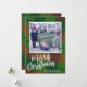 1 Photo with Script and Retro Plaid Pattern green Holiday Card