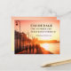 Postcard with inspirational quote Christian scripture depicts a photograph with the sun setting over the water and four friends walking on the dock. It features a portion of Bible Verse 1 Thessalonians 5:11, "Encourage one another and build each other up." The greeting, prayer can be personalised or deleted for a hand written message.
