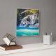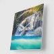 This wall clock showcases the 1 Thessalonians bible scripture in a unique print font with black, white letters placed over a picture of a waterfall with beautiful blue water with bible citation. This clock is made for any wall and printed with a AcryliPrint®HD process measures 10.75" x 10.75" and made from grade-A acrylic. Battery operated uses one AA battery for Indoor use only, not recommended for outdoor use.