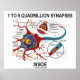 Showcase your wry neurological side with this poster featuring all key parts of a neuron / synapse along with the saying "1 To 5 Quadrillion Synapses Inside".