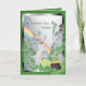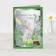 This "St. Patricks Day Customise It” greeting card, features adorable West Highland Terrier puppy number two, curiously checking out a very cute Leprechaun resting on a silver shamrock. Inside of card has this beautiful message: