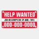 Are you hiring and want to get the word out? This economical 1' x 2' single sided, "Help Wanted" banner with job description line and phone number, is fully customisable! For indoor or outdoor use. All banners are hemmed and welded for a clean finished edge. For easy outdoor installation, on any surface, use the grommet option.