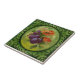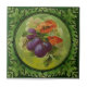 This gorgeous tile is one of a set of two and features an expertly hand painted group of poppies and other flowers and fruit surrounded by a leafy green frame. Reproduced from an original circa 1900 tile. Available in 4.5 and 6 inch tiles as well as other items. You can frame it to hang on a wall, use as an accent wall tile, trivet, coaster, or place it on a small easel as an object d'art. Also makes great backsplashes and wall tiles for kitchen, laundry, bath or shower. Note that, although this tile looks like it is has a raised outline as the original does, this reproduction is actually flat, printed in a faux relief or trompe l'oeil ("fool the eye") style that captures the look of the raised detailing on the original on a smooth surfaced ceramic tile.