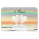 Magnet for first anniversaries with my design of two paper hearts floating on the water under a rainbow. Customisable text says "1 Year".